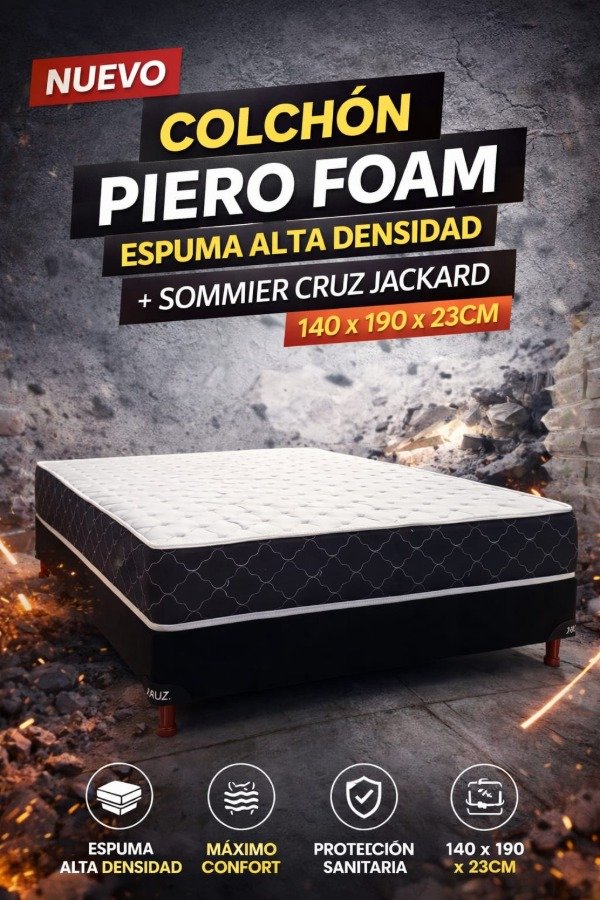 CONJUNTO COLCHÓN PIERO ESPUMA ALTA DENSIDAD + BASE CRUZ 140 X 190 CM